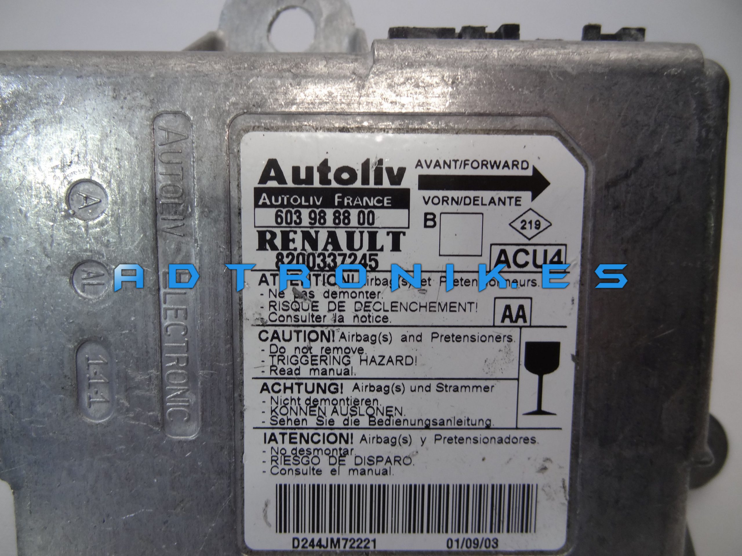 En ADTRONIK.ES – Centralitas (Módulos) de Airbag, podemos solucionar y reparar su airbag con varios tipos de averías, incluso derivados del funcionamiento de su propia centralita, ya sean originadas por motivo de un accidente, o por el bloqueo de la unidad por algún tipo de fallo o avería. ♦Por eso, nosotros aconsejamos la reparación o reprogramación de las Centralitas (Módulos) de Airbag, ya que, substituir las unidades dañadas por unas nuevas, llevaría a unos costes mas elevados.